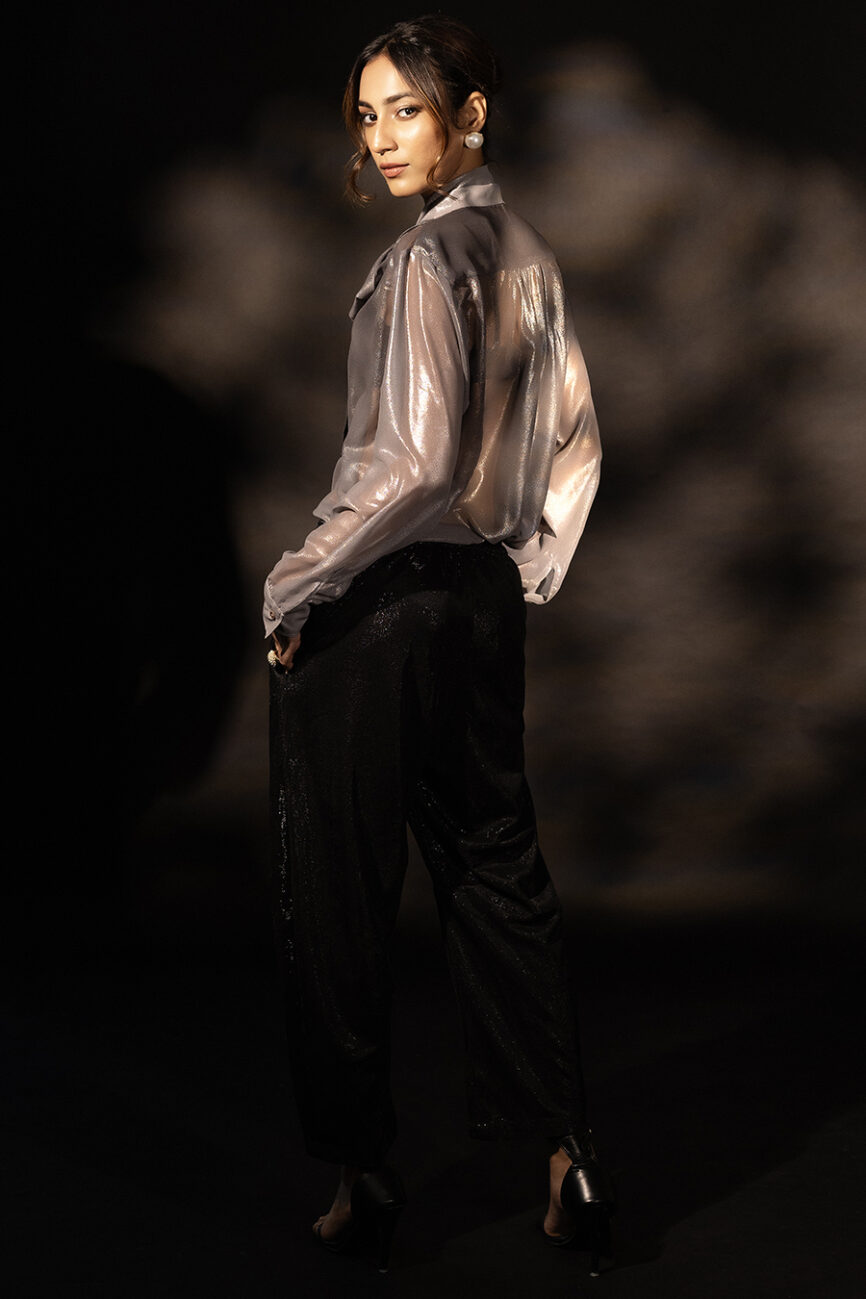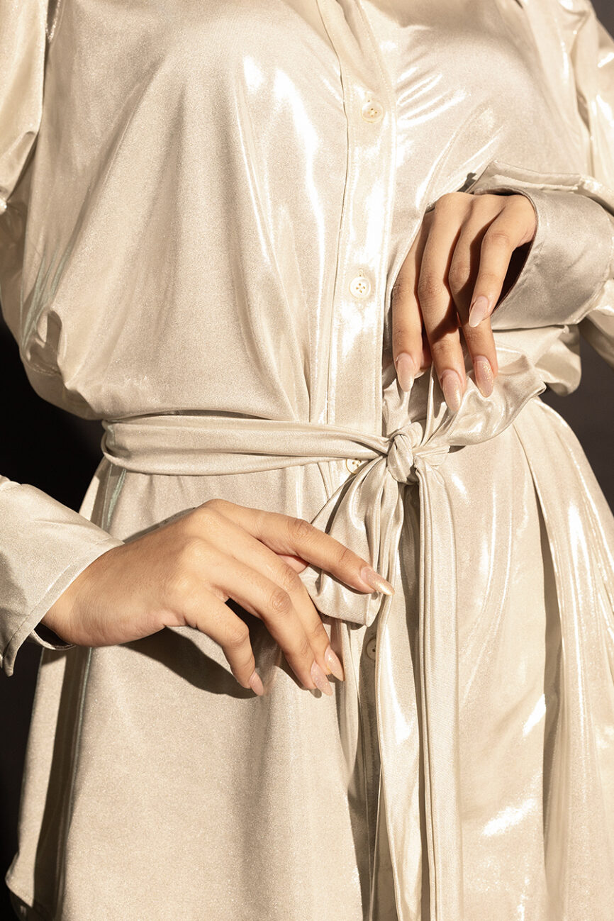 Tiger Begum’s HOT METAL collection reimagines glamour in liquid shine. Wrinkle-free fabrics, sourced from around the world, drape with effortless elegance and whisper understated opulence. Light, fluid, and luminous, HOT METAL is designed for women who navigate the world with grace and quiet power.